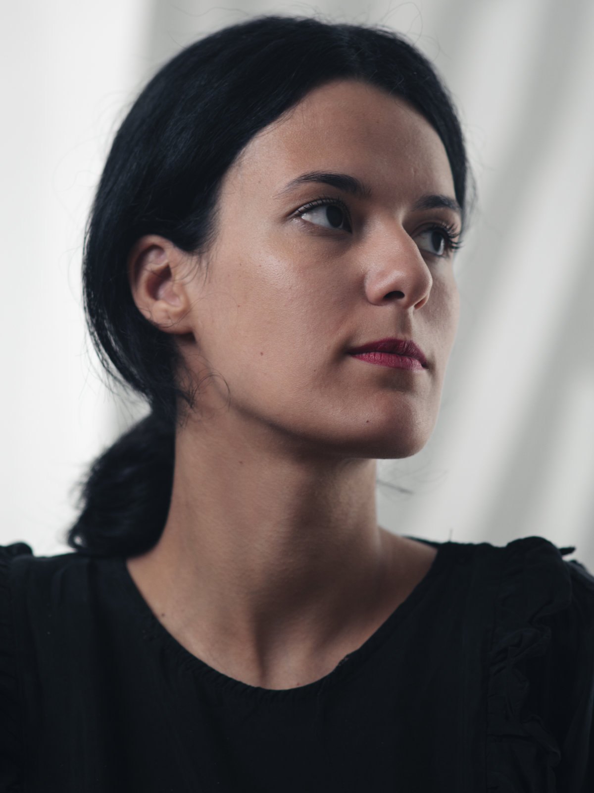 L'œuvre de Nadia Guerroui est une oscillation permanente entre multiplicité et vide. L'artiste elle-même a une formation en textile et son travail peut être défini comme une recherche sur la transformation des matériaux sous l'influence de la lumière, de la nature et du temps. La simplicité apparente de son travail devient elle-même une qualité esthétique, et certaines pièces pourraient être qualifiées de réflexives ou d'auto-référentielles. Ses méthodes relèvent de l'insaisissable. Si ses œuvres affichent parfois une exactitude mathématique dans le cadre de paramètres spatiaux stricts, elles sollicitent néanmoins la sensibilité du spectateur et créent des relations étroites entre leurs divers éléments formels et thématiques, tels que l'environnement, l'art dans un espace public, l'architecture et la sculpture. Le choix de matériaux éphémères, naturels et abordables n'est pas non plus un hasard. Il vise plutôt à créer une relation entre l'individu et le social, et à laisser au spectateur un espace pour établir sa propre vision et compréhension de l'œuvre. Cette artiste a la capacité de faire des expériences avec des matériaux qui entrent dans des domaines d'intimité avec le spectateur.